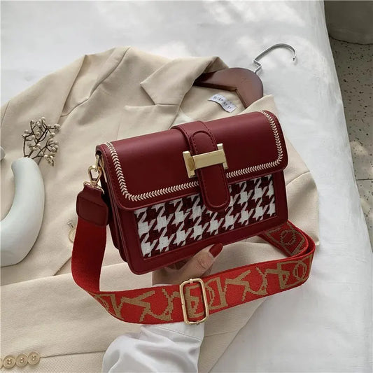 Elegant Houndstooth Crossbody Bag — Women's Vegan Leather Shoulder Purse